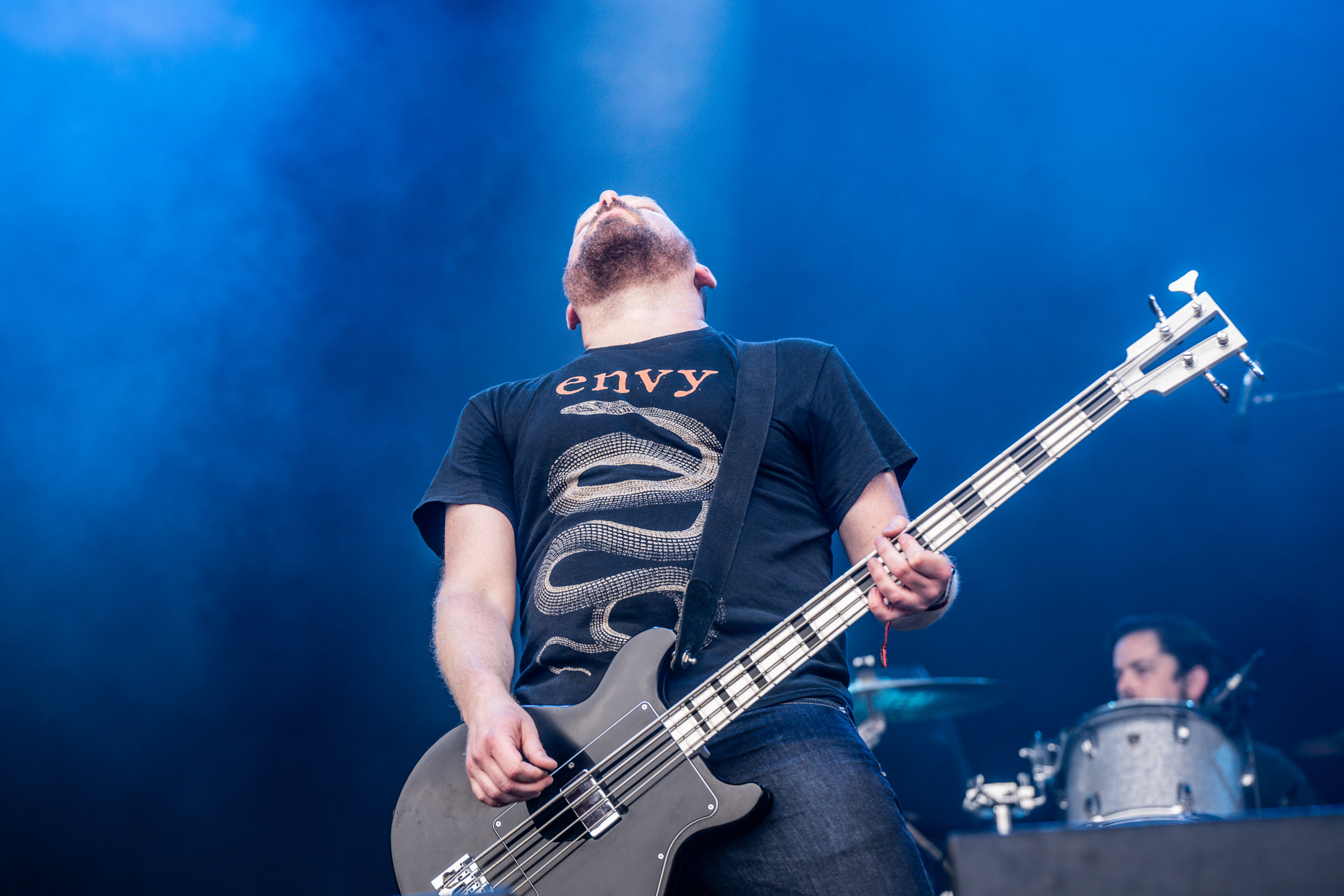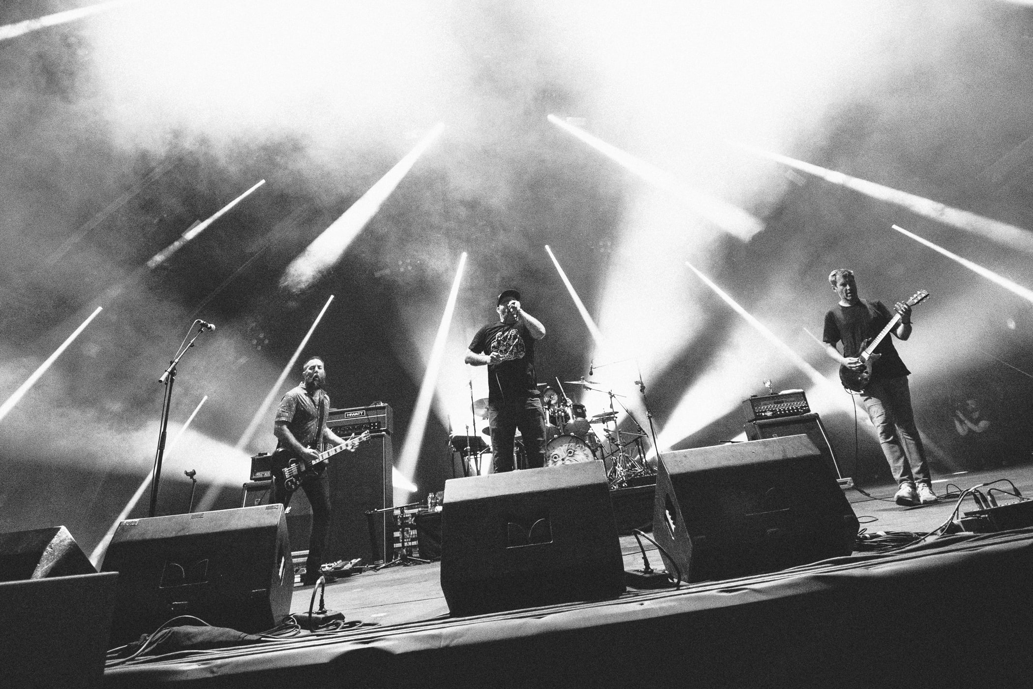 Peut-être la découverte du Hellfest, Helms Alee est quand même actif depuis 2007 et compte six albums studio. Aussi incroyables qu’inclassables, on les retrouve logiquement sur la Valley avec le reste des freaks au genre non identifié. Ou plutôt « genres » tellement on retrouve de sensations associées à des scènes différentes, depuis les tréfonds embrumés doom/psyche glissant sur le shoegaze, vers des cris et structures post-hardcore/post-metal, pour parfois se permettre des titres « juste » grunge. Helms Alee c’est un guitariste, une bassiste et une batteuse, et à trois ils peuvent tout faire. Les trois chantent, avec des voix aux styles aussi différents que complémentaires.