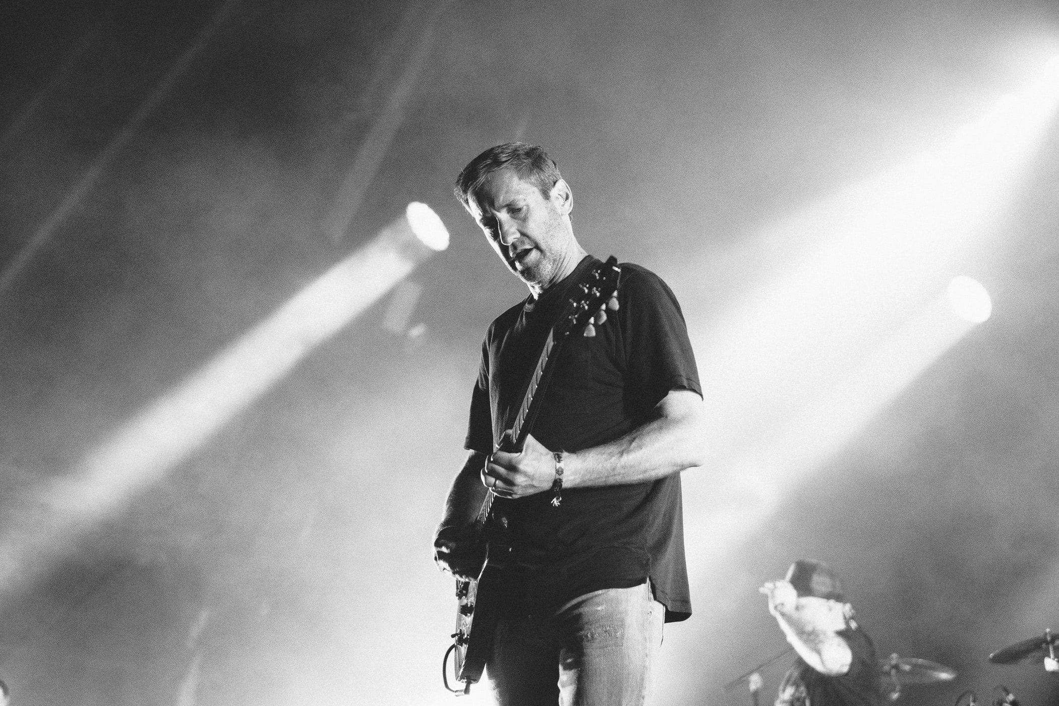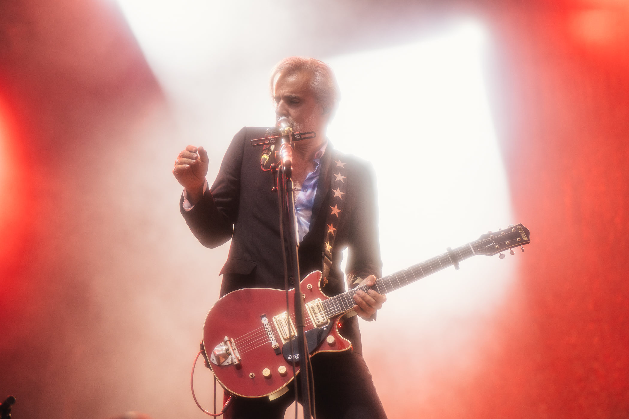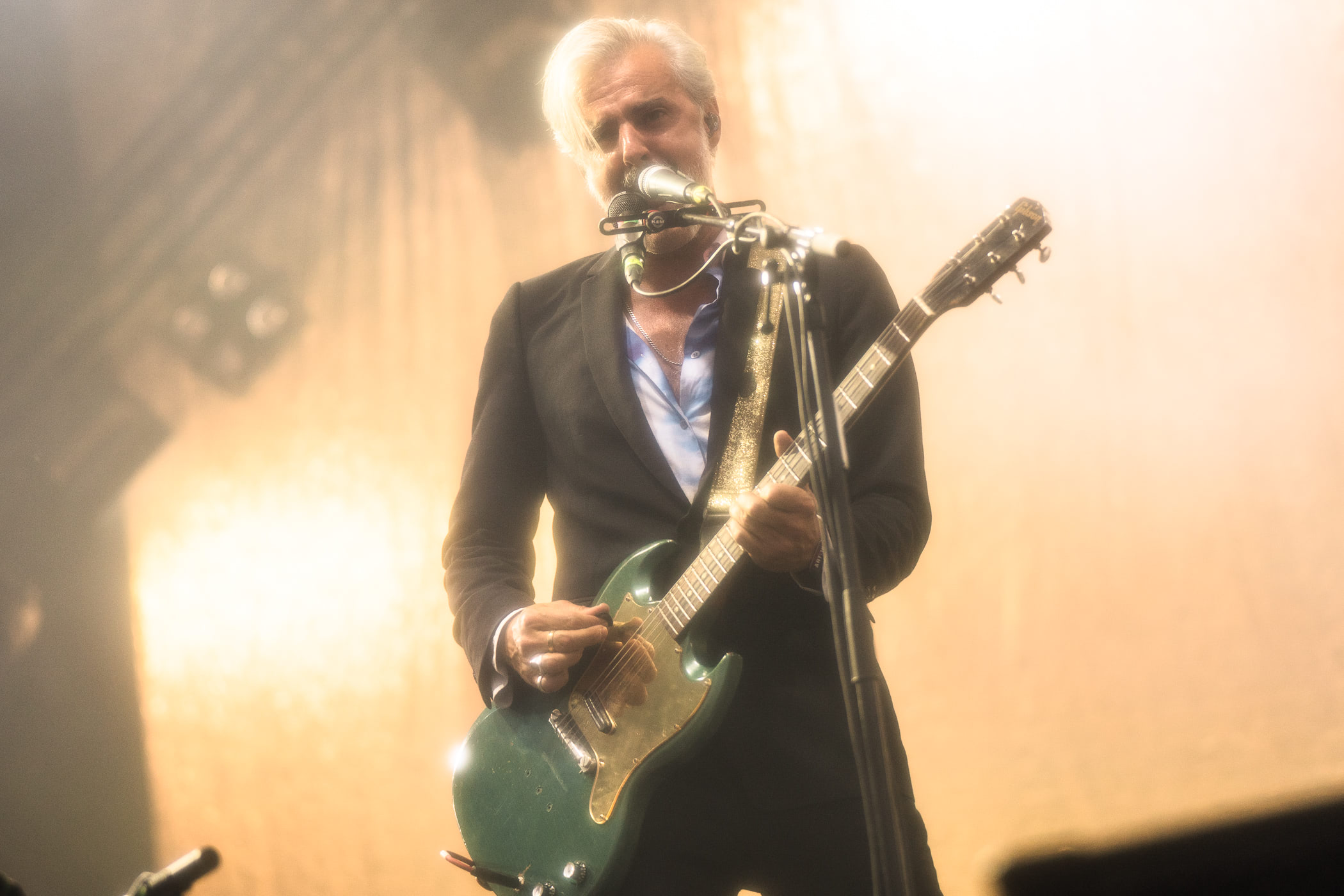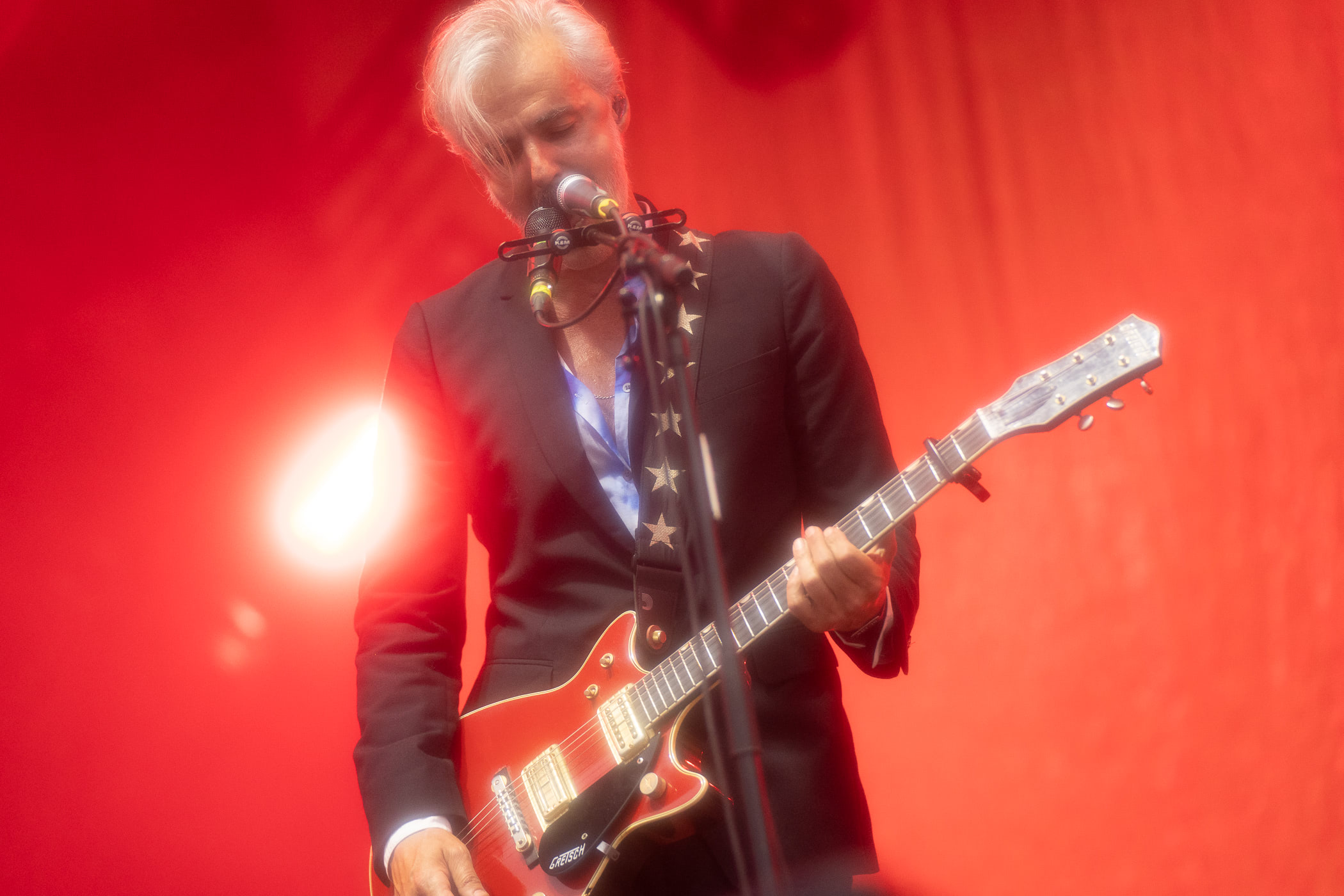 Triggerfinger c’est du stoner pour mamans ! Et ce n’était visiblement pas une simple vanne, vu l’armée de quarantenaires frétillant aux premiers rangs. Il est vrai que le chanteur Ruben a une bonne vibe de playboy des fonds marins, mais nul ne pourrait l’accuser de faire un amalgame entre la coquetterie et la classe. La même chose ne peut être dite du public, en mode full enterrement de vie de jeune fille, qui lui hurle des « à poil ! » entre les morceaux. Le phénomène trouvera son acmé quand le Ruben osera enlever sa veste. Un effeuillage immédiatement suivi d’un rugissement libidineux : « ouuuuuuuuuuuuh ! ». Mi-amusé, mi-agacé, il tourne le truc en dérision :