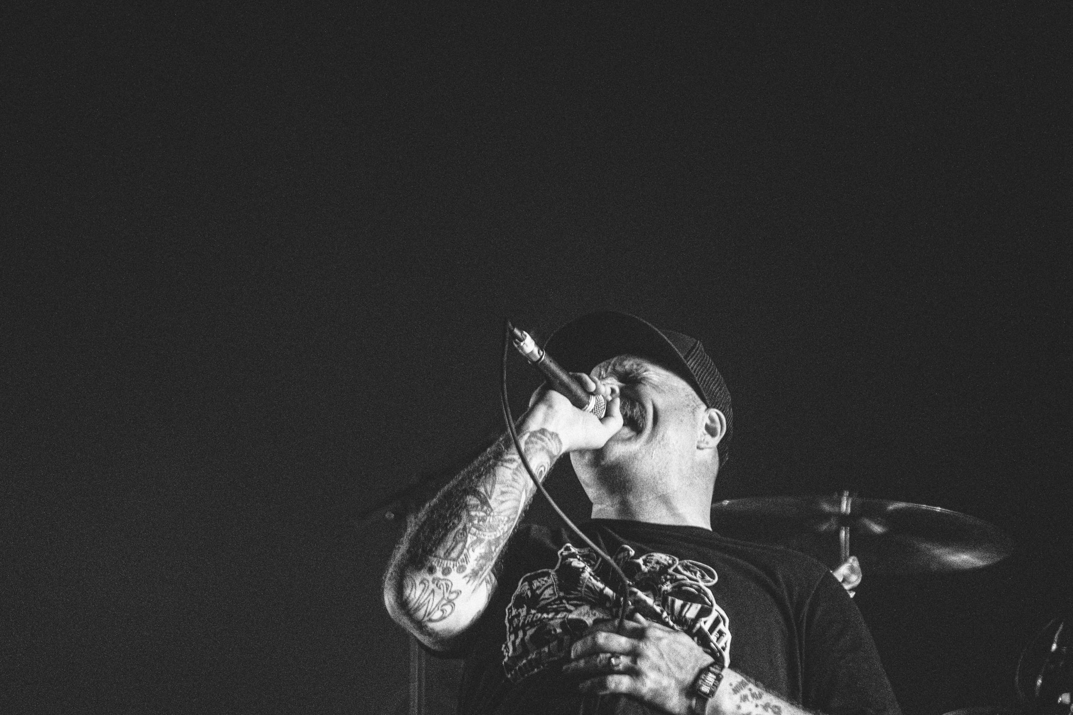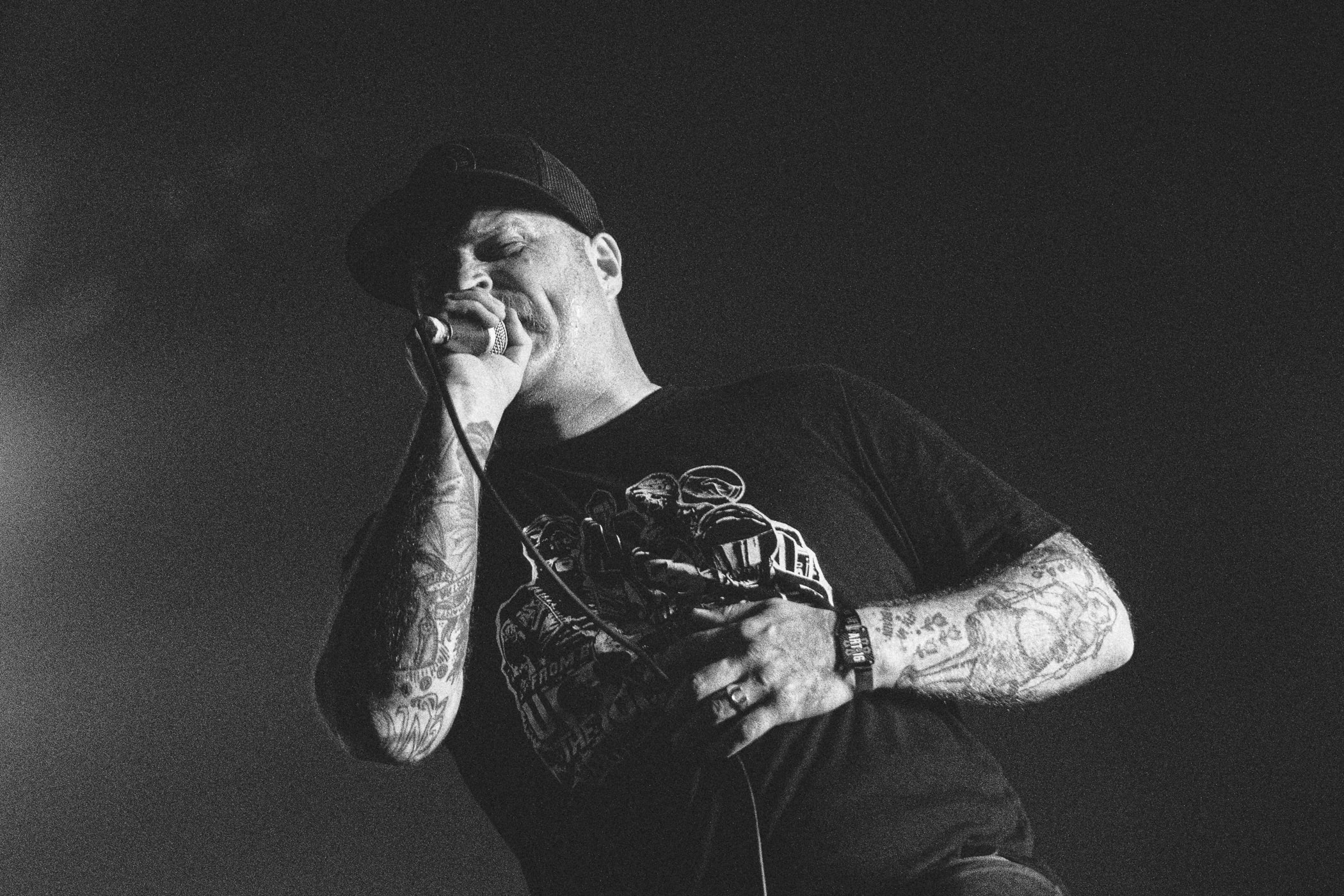 C’est à ce moment-là que je ressens un grand CLAC. Ma mâchoire vient de se refermer d’un coup, alors que ma langue était malheureusement devant mes dents. Après des années passées dans des pits de diverses intensités où j’ai pu croiser des kids qui venaient au concert avec leur protège dents, je sais très bien que c’est possible de se bouffer la langue. Surprise, aujourd’hui c’était mon tour. Le sang commence à me remplir la bouche et je me doute que je vais bientôt tomber.
