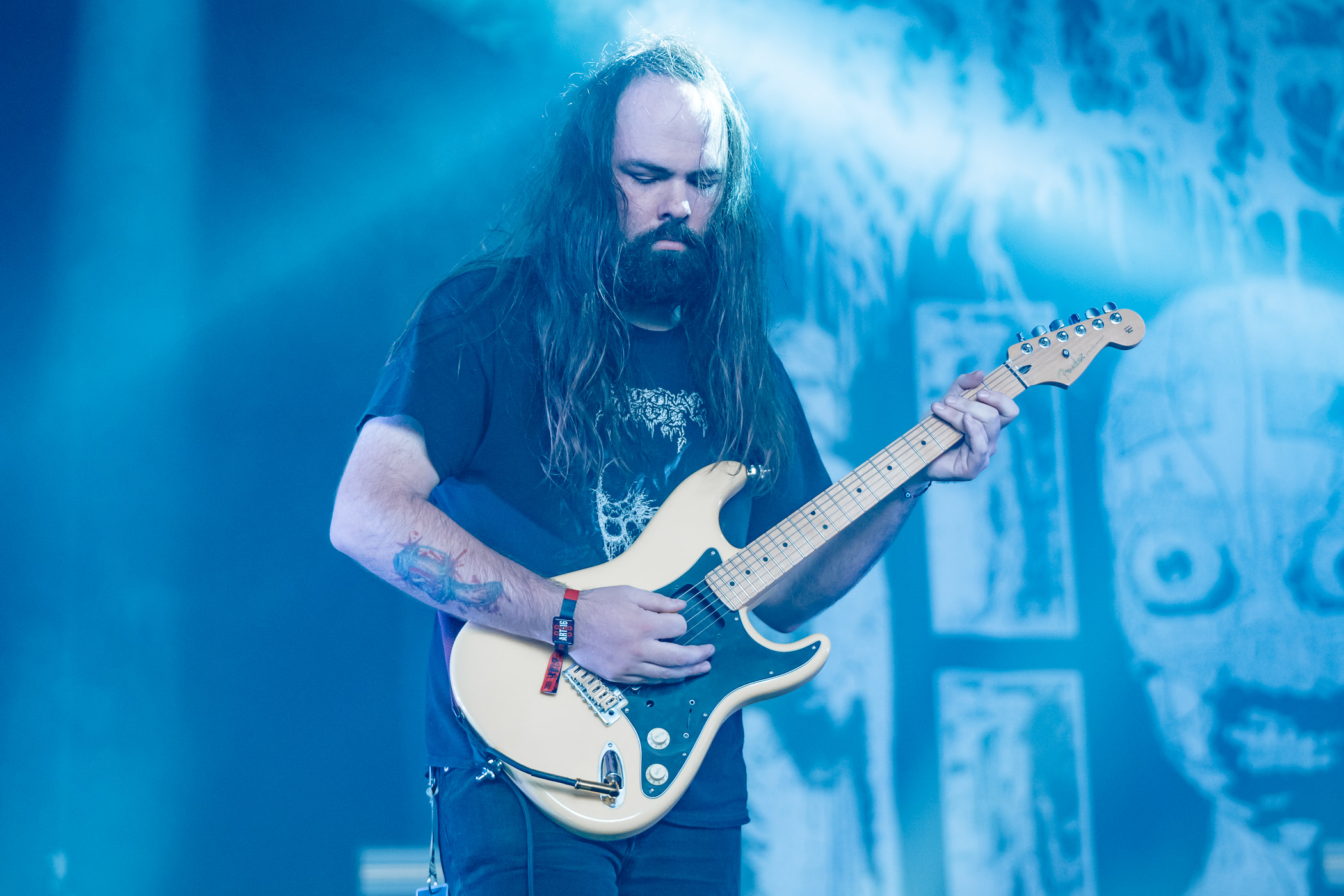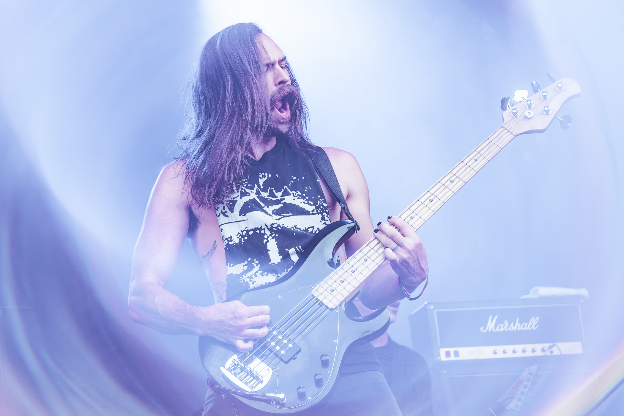 Les heavy dandys nous servent une recette connue mais proprement exécutée. N’ayant pas suivi l’actualité récente des belges, on découvre avec tristesse que Monsieur Paul n’est plus là. Heureusement, on retrouve toujours derrière les futs un Monsieur Mario, un peu plus calme mais toujours prêt à faire le show. Sur le côté de la scène, le guitar tech ressemble presque à un quatrième membre du groupe vu qu’il est toujours là le manche à la main, Ruben changeant de guitare à chaque chanson.