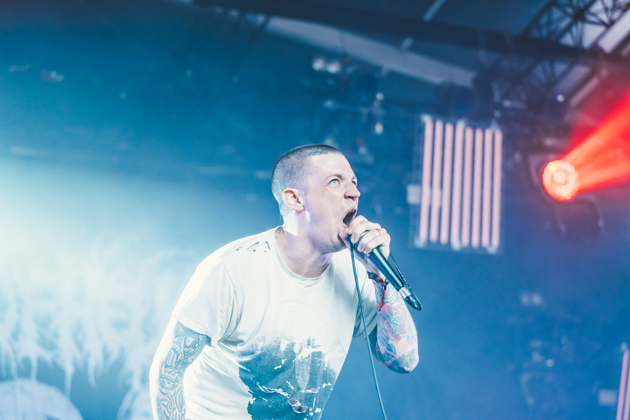 On va de surprise en surprise alors forcément, comme on n’a pas oublié que le turbo-tube de son dernier album bénéficiait d’un featuring avec Reba Meyers de Code Orange… qui a joué la veille… On se prend donc à espérer un featuring exceptionnel comme on en voit qu’au Hellfest ! Mais non. Planté à la barrière avec un t-shirt dont le dos clame fièrement « THINNERS OF THE FUCKIN’ HERD » un fan observait anxieusement le côté de la scène depuis le début du concert. Il a été déçu. Toutes nos pensées pour lui dans ce moment qui a sans doute été difficile. Reste que « Lowered » est quand même excellent. Allez l’écouter si ce n’est déjà fait. En boucle, de préférence.