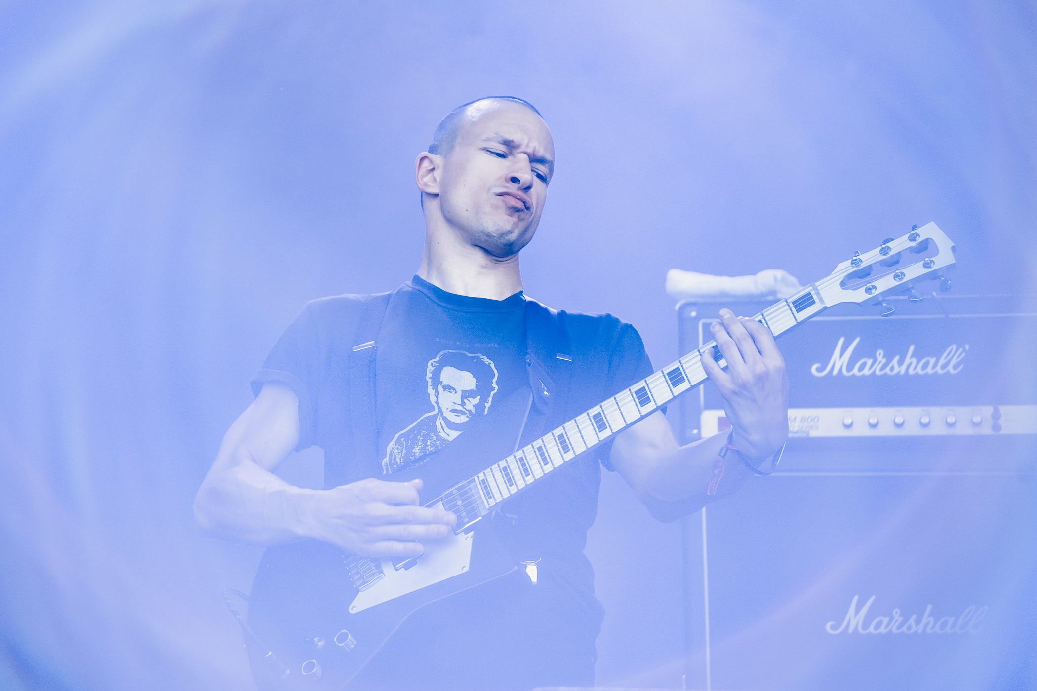 Etouffant sur album, Full of Hell présente en live un show capable de faire entrer dans leur délire les spectateurs habituellement assez éloignés de ce type de sonorités. Grosse présence scénique bien sûr, mais aussi ce petit plus de voir effectivement qui joue quoi et comment se passent leurs expérimentations. On n’est donc pas surpris de voir que ça réagit assez bien dans le public quand un beau pit se forme au milieu de la tente. Toujours à l’aise, Dylan harangue les courageux :