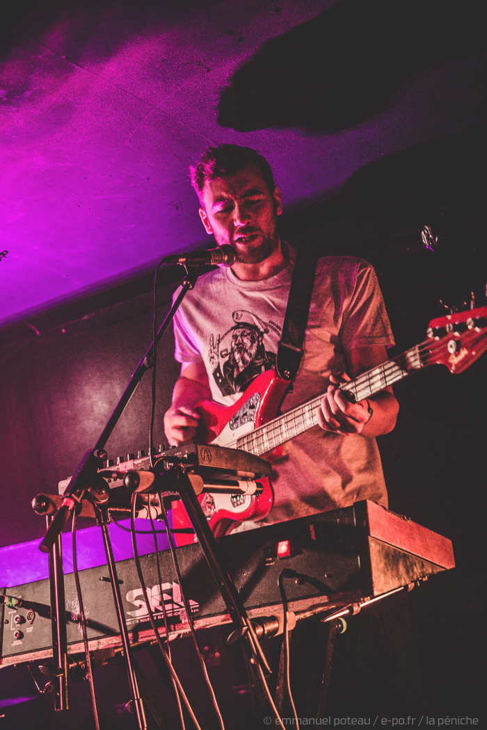 Un premier samedi qui m’avait déjà énormément enthousiasmé mais qui allait presque être supplanté par le show de Odezenne le lendemain. Alors que les mecs remplissaient l’Aéronef (1800 places), les voir jouer devant un parterre de 100 personnes était forcément un petit événement. La dernière fois que je les avais vus, c’était durant le Festival des Nuits Secrètes cet été (et là aussi, devant une foule plus importante). Le public, bien que plus jeune, ne s’y trompe pas, les fervents fans sont présents pour assister à une date qui tient à cœur à la formation (le groupe arborera même des T-shirts de la salle sur les dates suivantes), puisque leurs premiers concerts ont eu lieu ici même. Car si la boite de prod’, À Gauche De La Lune, qui est derrière la Péniche a l’habitude de gérer de très grosses dates dans la région et s’avère être un acteur majeur incontournable de la scène musicale lilloise, la structure aura assuré les premières dates régionales de nombreux artistes (Triggerfinger, Kevin Morby, Fu Manchu, Kyle Gass) tout en étant en capacité d’accrocher des noms improbables comme Mark Lanegan ou encore le généreux Nick Oliveri avec qui on aura même partagé des hamburgers.