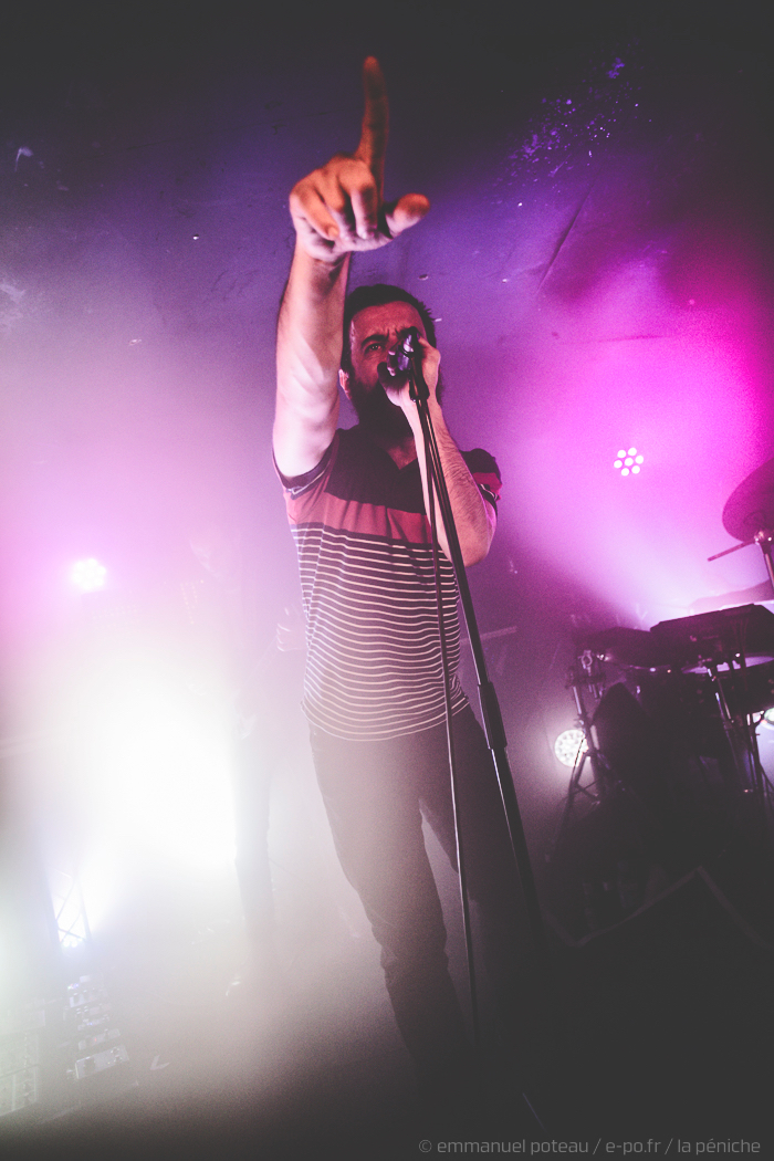 J’avoue, quel sentiment doux amer de voir une de mes photos de Nick Oliveri illustrer le communiqué de fin d’activité de la Péniche mais cela ne faisait que présager d’une dernière bonne nouvelle pour moi ; la salle qui avait véritablement apprécié mes photos voulait que je sois le seul photographe à couvrir ces dernières dates. Deux week-ends sous forme de feu d’artifice avec une programmation alléchante et que je devais garder secrète. Autant vous dire que ça brûle les lèvres quand on apprend les noms des semaines à l’avance. Faisant office de photographe « in house », j’ai donc eu le plaisir de me régaler d’un premier week-end enchainant la classe rock n’roll de Week-End Affair en pleine ascension et porté par Yuksek, l’électro duo ultra prometteur Agar Agar (de retour au Grand Mix en Février) et les très bons BRNS (faut le dire brains hein, pas B-R-N-S, apparemment, j’étais pas le seul à l’apprendre).