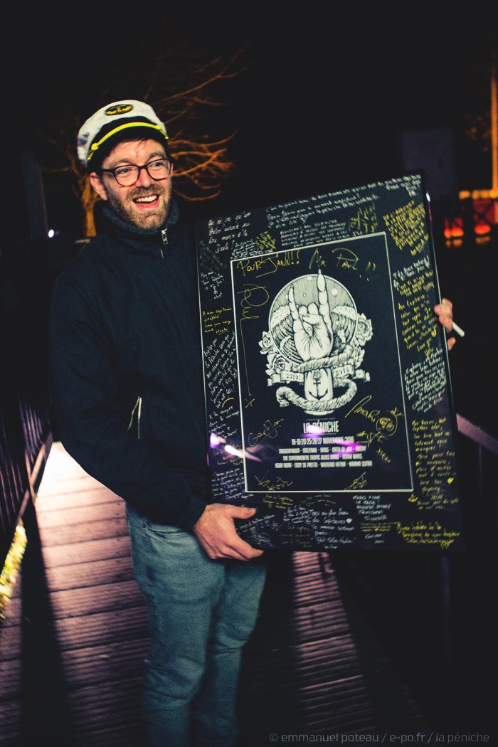 Tout amateur de musique et surtout de concert lillois y aura forcément posé le pied. Pas besoin de l’avoir marin, juste une oreille attentive dans un des cadres les plus atypiques qui soient, je parle bien évidemment de La Péniche ! Certes Lille n’avait pas le monopole maritime (citons Paris ou encore Lyon qui semble crouler sous les embarcations) mais dans la capitale des Flandres, on avait la chance, en plus, d’y avoir un gros tourneur aux commandes. De fait, on avait là aussi une programmation à toute épreuve. Malheureusement, c’est durant notre précédente interview du Grand Mix que nous avions appris de façon officieuse la fermeture de la salle quelques mois avant, et le temps n’aura pas plus servi à digérer la news. Seule consolation, j’allais être le témoin privilégié des soirées de clôture de la structure.